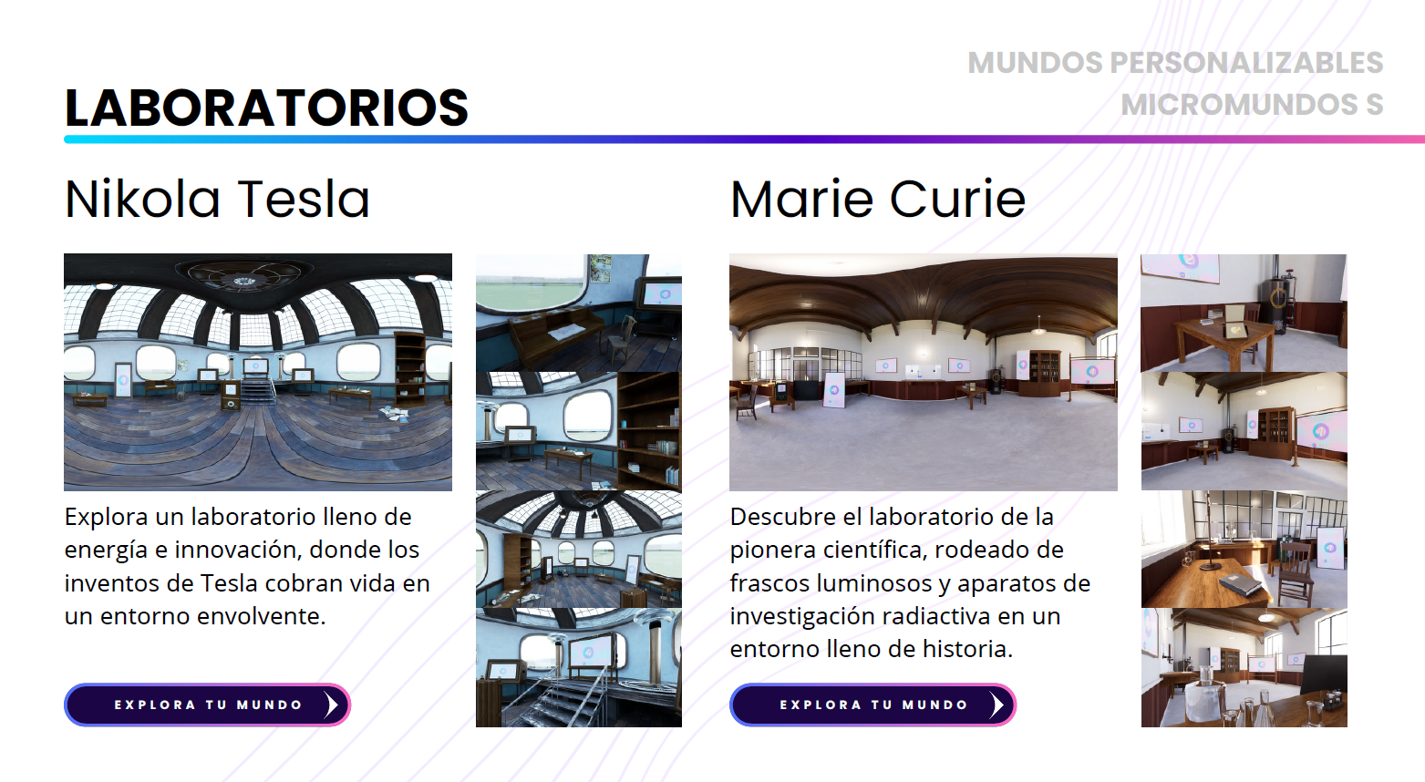 Un escenario inmersivo que permite trabajar conceptos de exploración, ciencia o cualquier otra disciplina mediante contenido interactivo.