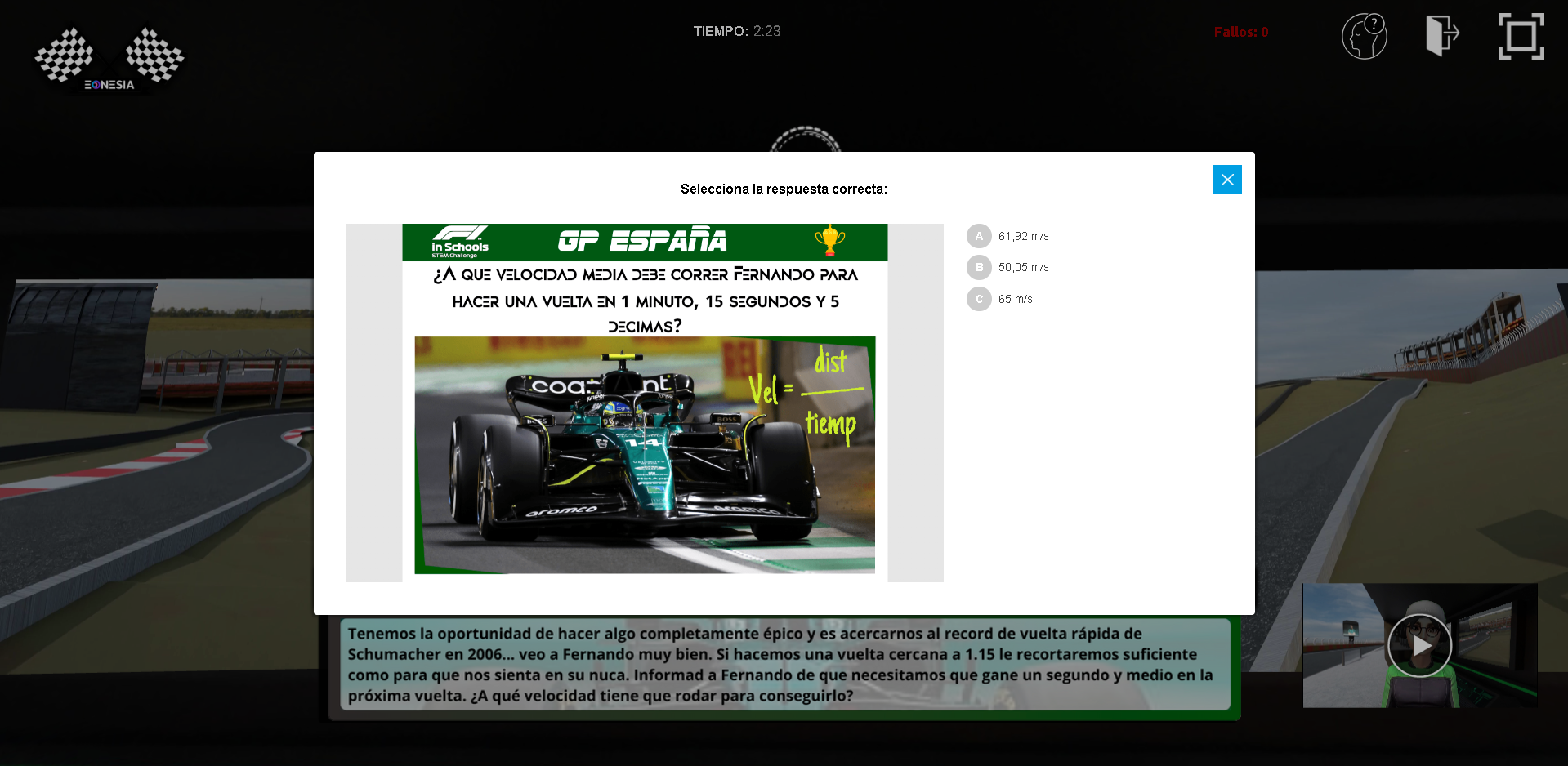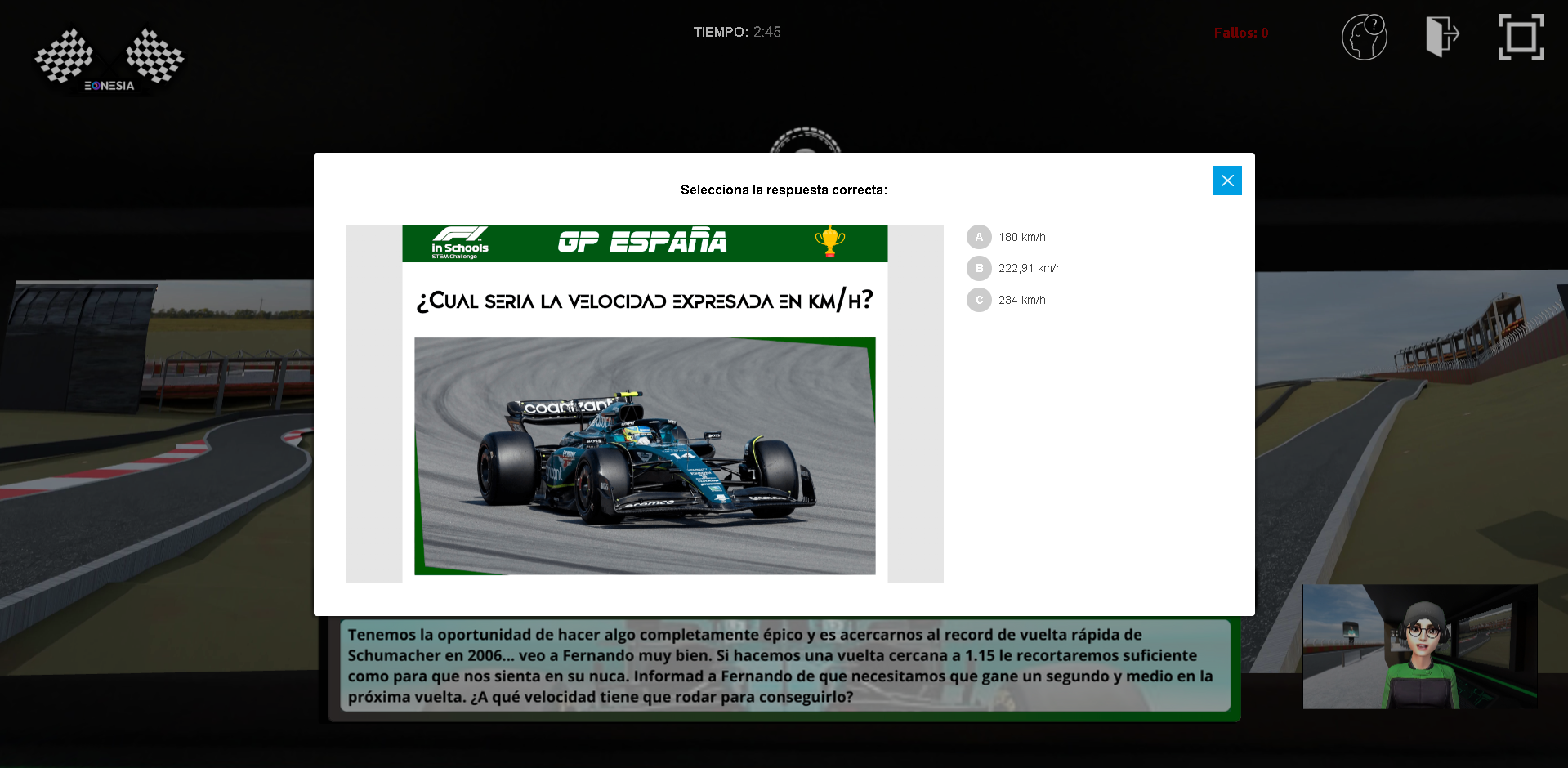 Por eso, en esta experiencia educativa de física en Web360, tú calculas la trayectoria. Tú eliges la estrategia. Y si aciertas, él gana su tercer título mundial.